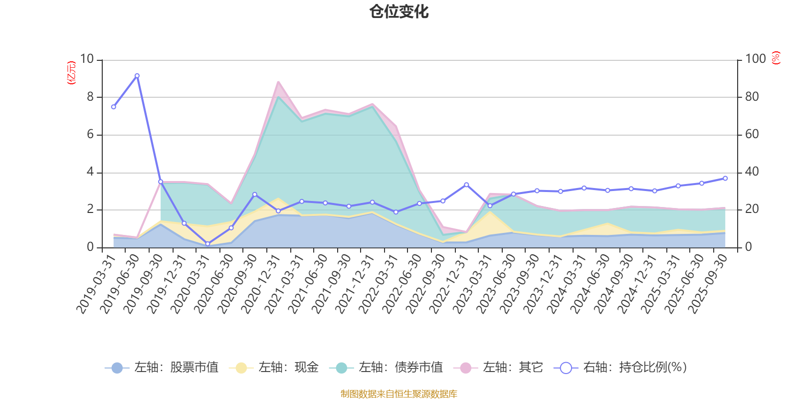 据定期报告数据统计,近三年平均股票仓位为31.05%,同类平均为72.35%。2019年上半年末基金达到91.56%的最高仓位,2020年一季度末最低,为2.04%。