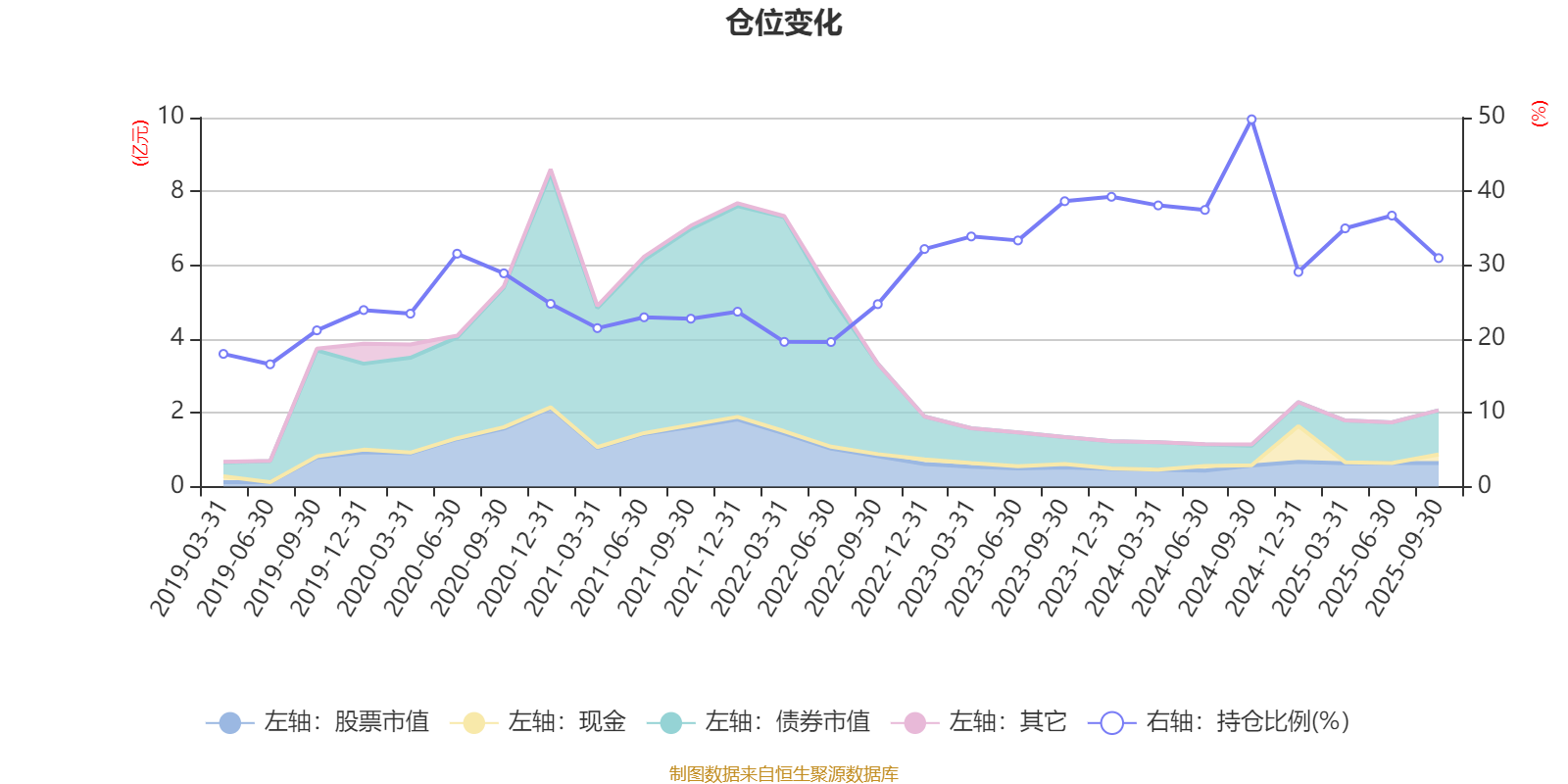 据定期报告数据统计,近三年平均股票仓位为36.21%,同类平均为72.35%。2024年三季度末基金达到49.77%的最高仓位,2019年上半年末最低,为16.57%。