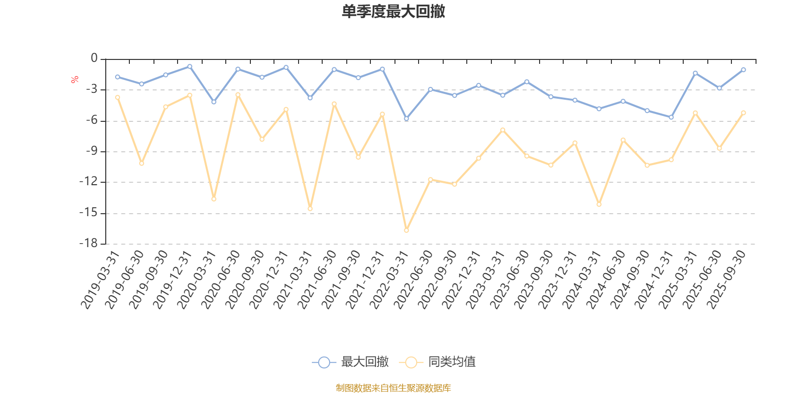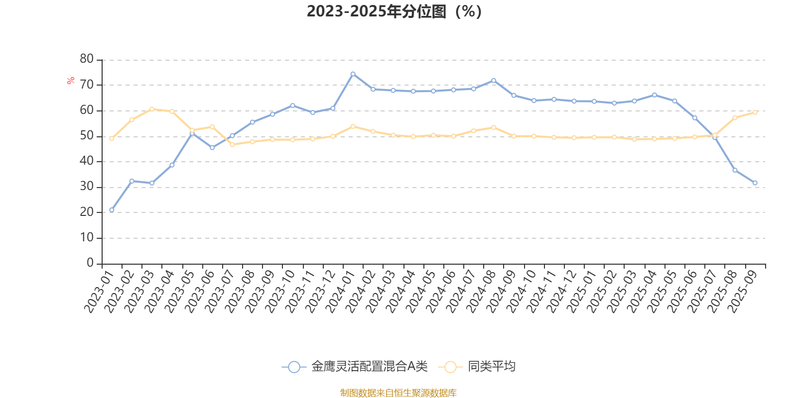 通过所选区间该基金净值增长率分位图,可以观察该基金与同类基金业绩比较情况。图为坐标原点到区间内某时点的净值增长率在同类基金中的分位数。