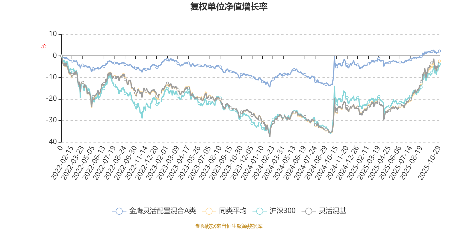 截至10月29日,金鹰灵活配置混合A类近三个月复权单位净值增长率为2.97%,位于同类可比基金1036/1287;近半年复权单位净值增长率为5.54%,位于同类可比基金1135/1287;近一年复权单位净值增长率为6.55%,位于同类可比基金1102/1287;近三年复权单位净值增长率为10.38%,位于同类可比基金813/1286。