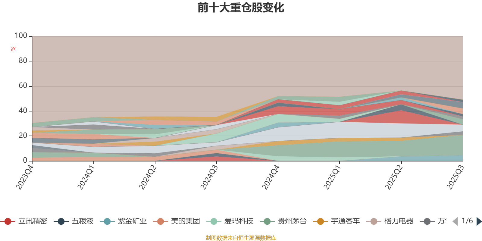 截至2025年三季度末,基金十大重仓股分别是贵州茅台、招商银行、中国平安、恒瑞医药、紫金矿业、药明康德、万华化学、百利天恒、三一重工、伊利股份。