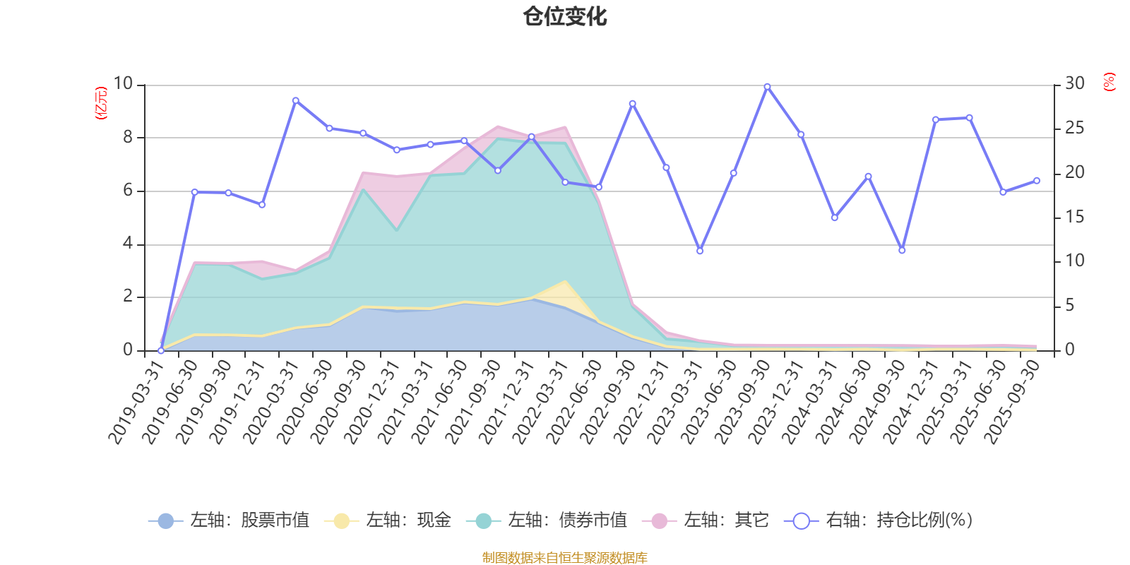 据定期报告数据统计,近三年平均股票仓位为20.13%,同类平均为19.14%。2023年三季度末基金达到29.78%的最高仓位,2023年一季度末最低,为11.25%。