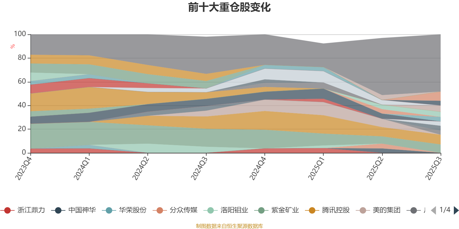 该基金持股集中度较高。截至2025年三季度末,基金十大重仓股分别是腾讯控股、阿里巴巴-W、紫金矿业、信达生物、新华保险、迈瑞医疗、中国生物制药、华大智造、中国国航、广发证券。