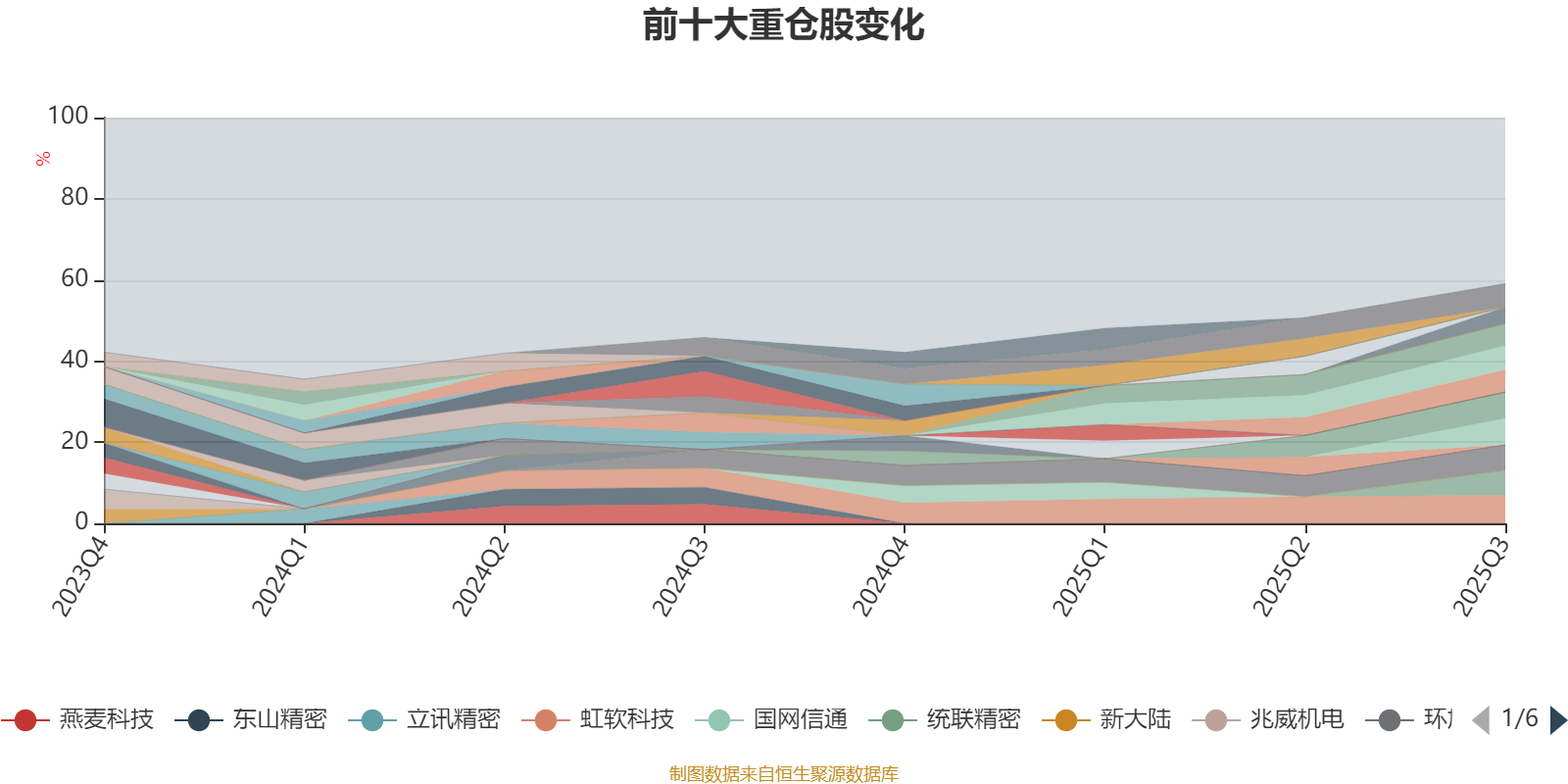 截至2025年三季度末,基金十大重仓股分别是虹软科技、世运电路、杰普特、环旭电子、统联精密、泰凌微、联赢激光、歌尔股份、和林微纳、当虹科技。