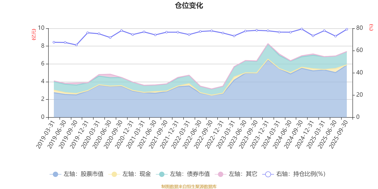 据定期报告数据统计,近三年平均股票仓位为76.55%,同类平均为85.99%。2024年三季度末基金达到79.42%的最高仓位,2019年三季度末最低,为65.07%。