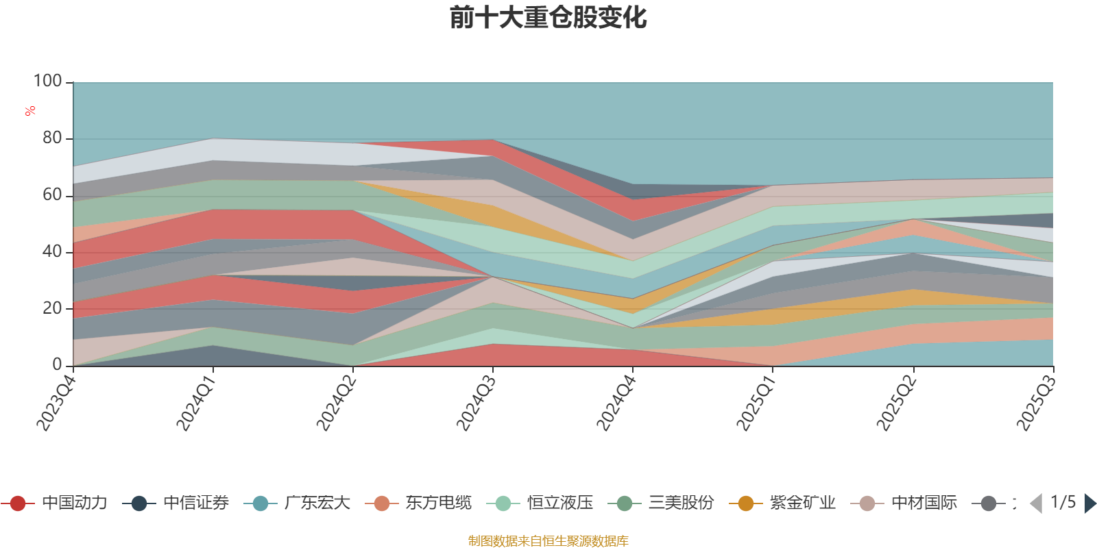 该基金持股集中度较高,近2年前十大重仓股集中度长期超过60%。截至2025年三季度末,基金十大重仓股分别是广东宏大、大金重工、东方电缆、中天科技、海力风电、龙净环保、金风科技、科远智慧、巨化股份、三美股份。