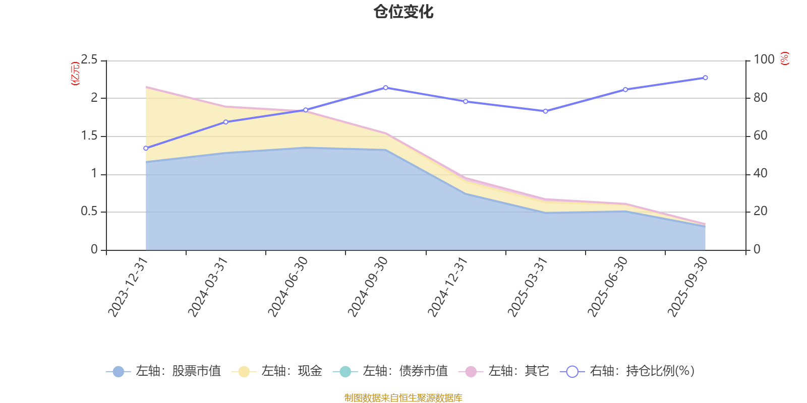 据定期报告数据统计,成立以来平均股票仓位为76%,同类平均为83.73%。2025年三季度末基金达到90.93%的最高仓位,2023年末最低,为53.72%。