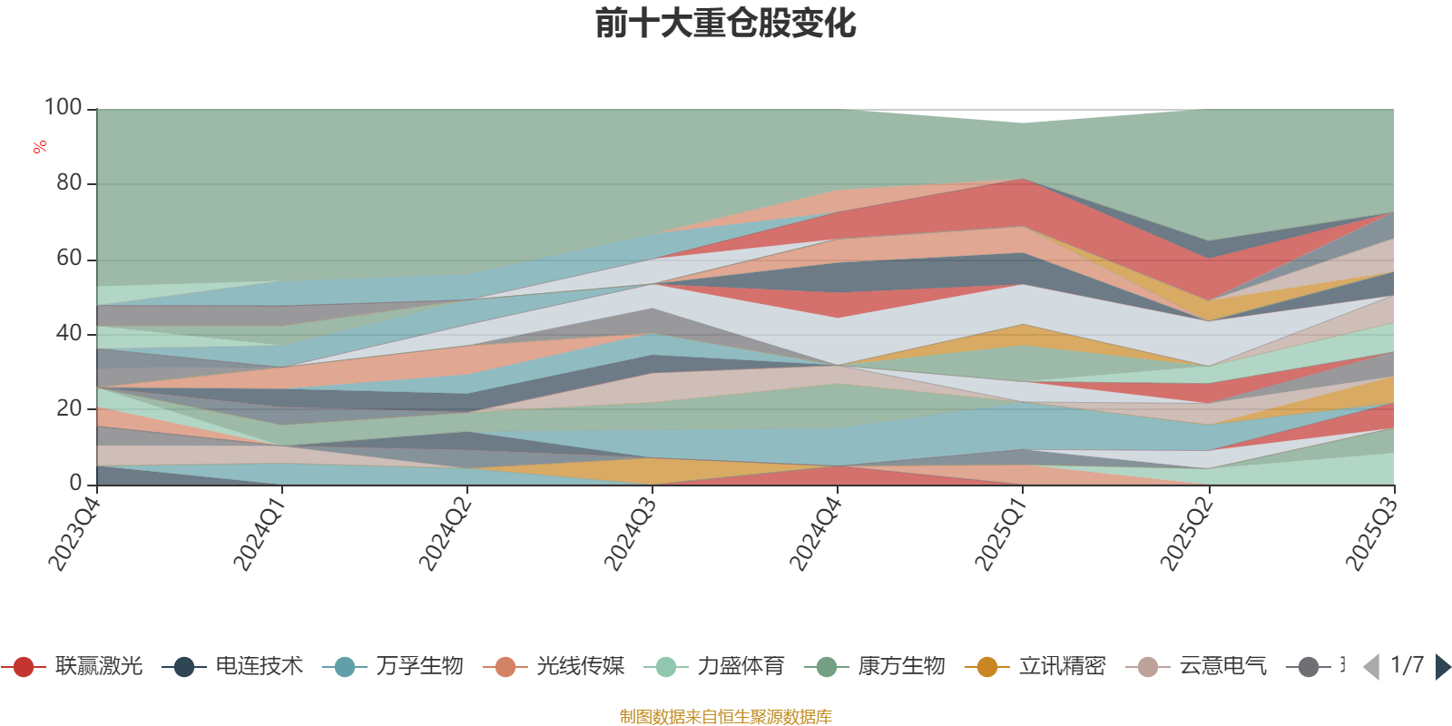 基金管理人在三季报中表示,本基金 2025 年三季度自下而上角度结合行业景气度、公司核心竞争力和公司估值水平,重点配置在医药、电子、电动汽车、机械制造和港股互联网等高景气行业方向。