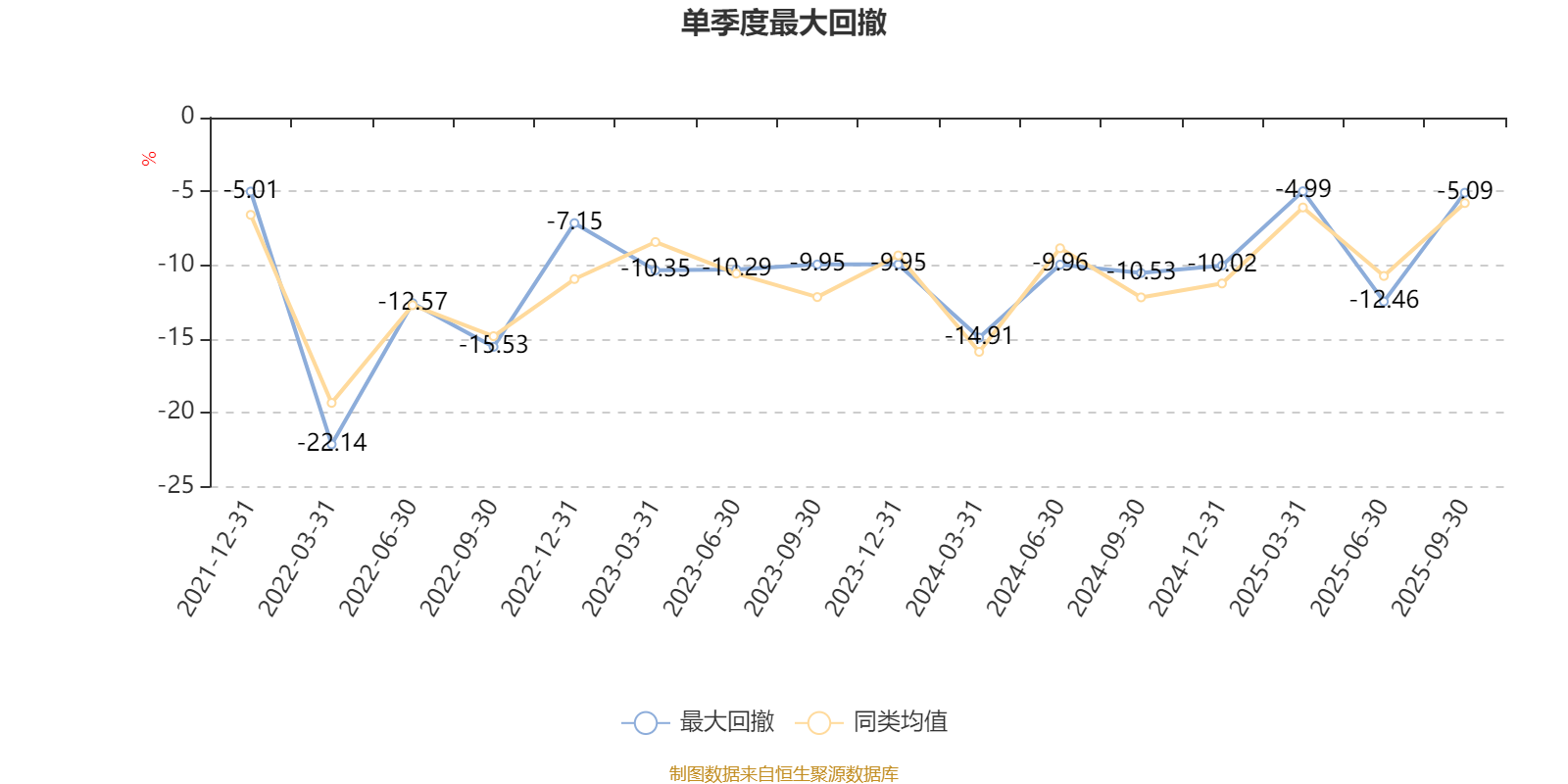 通过所选区间该基金净值增长率分位图,可以观察该基金与同类基金业绩比较情况。图为坐标原点到区间内某时点的净值增长率在同类基金中的分位数。