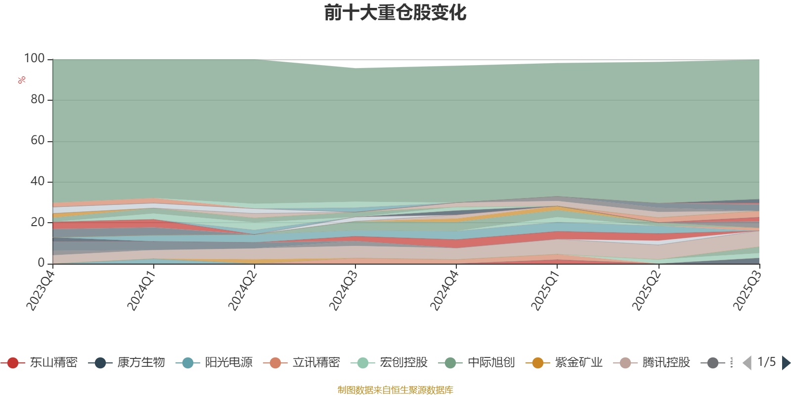 截至2025年三季度末,基金重仓股分别是腾讯控股、工业富联、信达生物、中际旭创、中国东方教育、康方生物、宏创控股、恒瑞医药、蓝思科技、上海复旦、复旦微电。