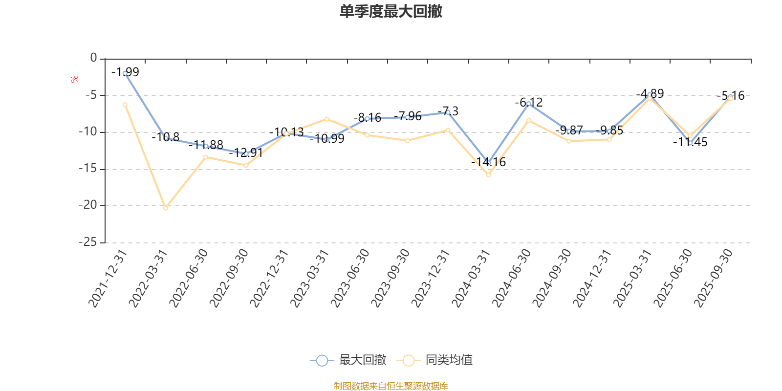 截至10月27日,基金近三年最大回撤为32.51%,同类可比基金排名92/251。单季度最大回撤出现在2024年一季度,为14.16%。