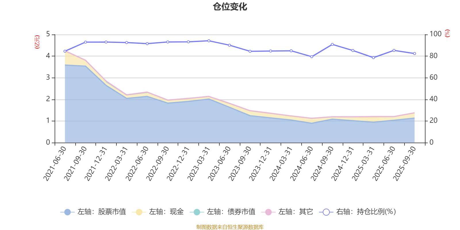 据定期报告数据统计,近三年平均股票仓位为86.14%,同类平均为83.73%。2023年一季度末基金达到94.2%的最高仓位,2025年一季度末最低,为78.62%。