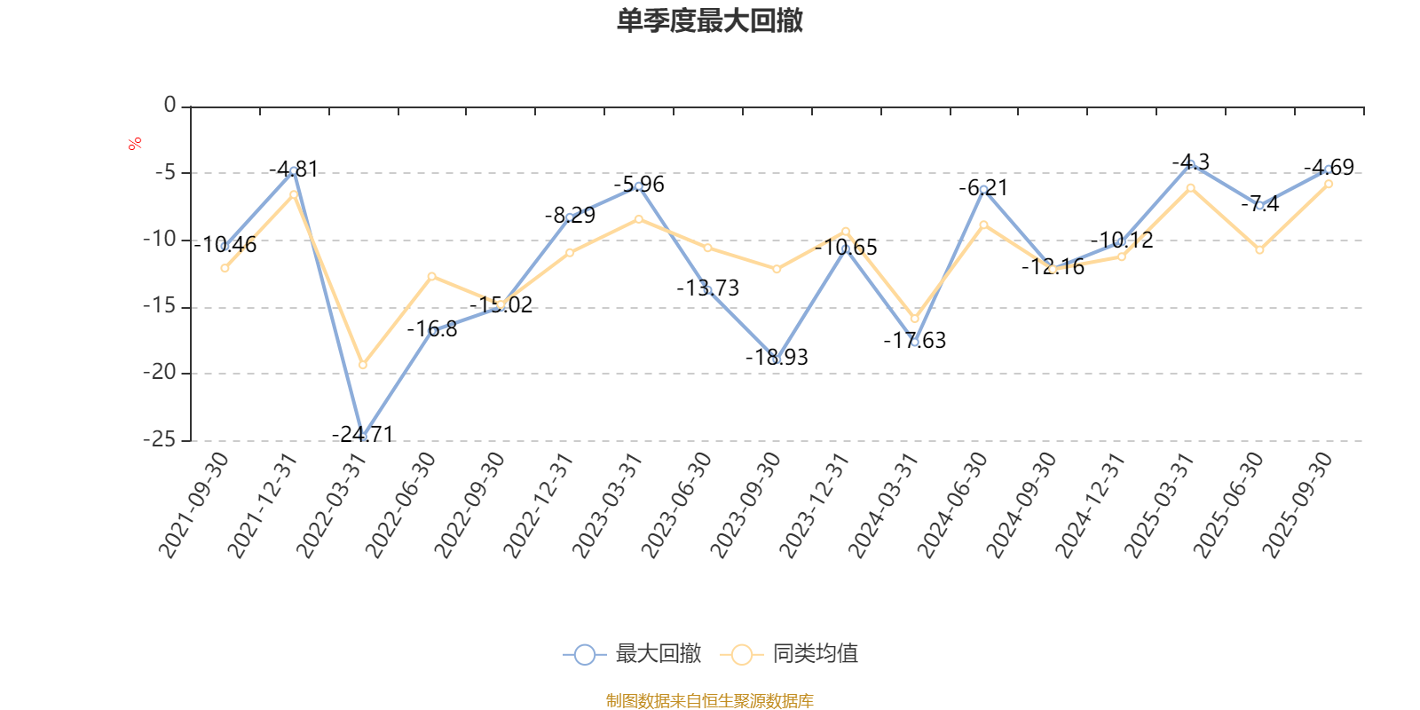 截至10月28日,基金近三年最大回撤为43.67%,同类可比基金排名268/363。单季度最大回撤出现在2022年一季度,为24.71%。