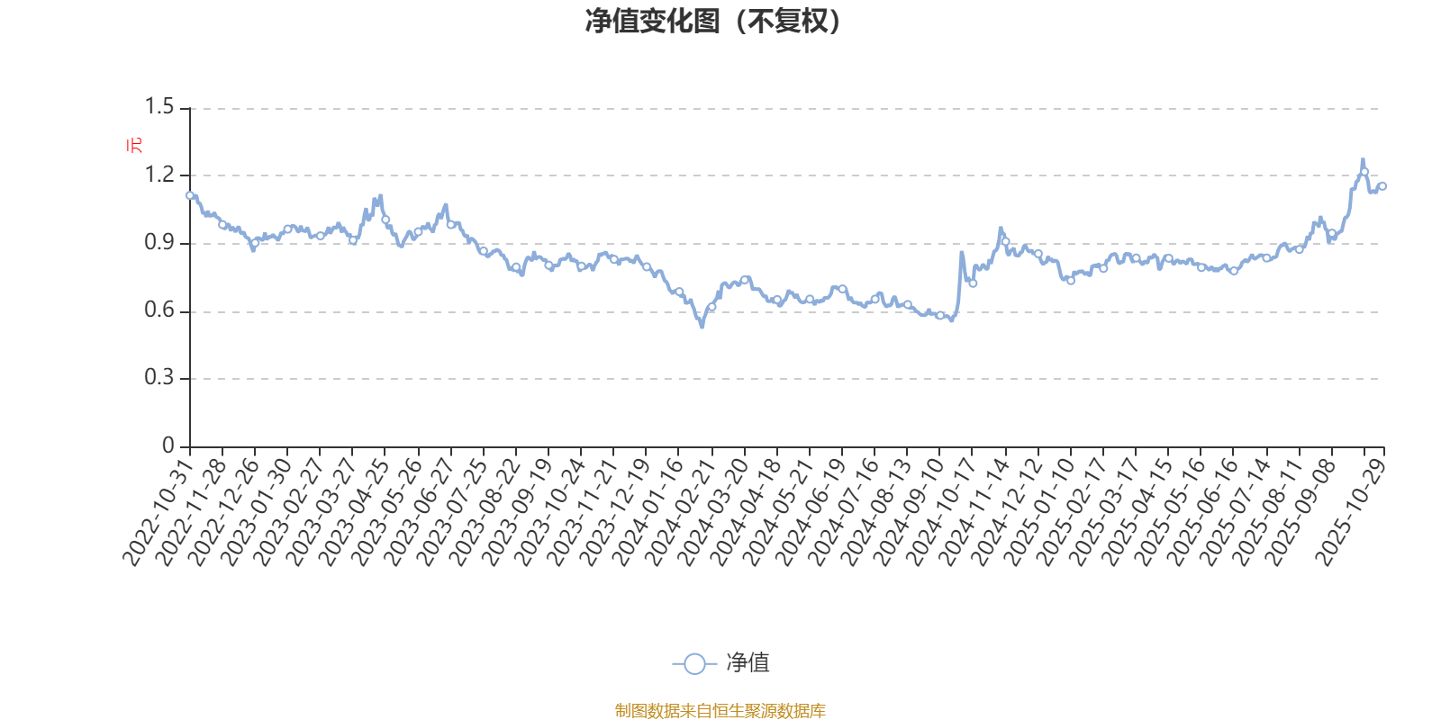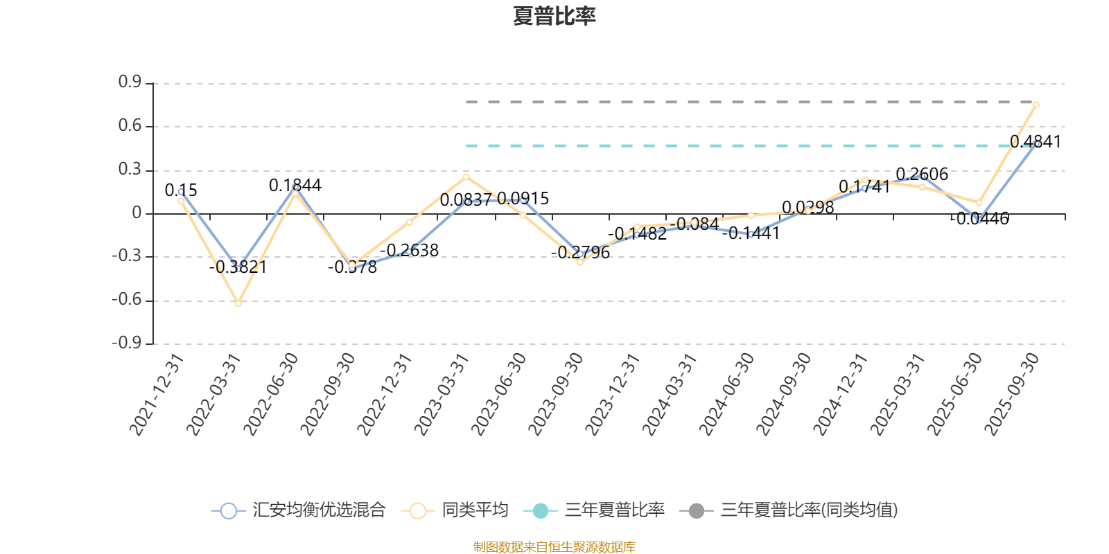 截至9月30日,基金近三年夏普比率为0.4665,位于同类可比基金144/159。