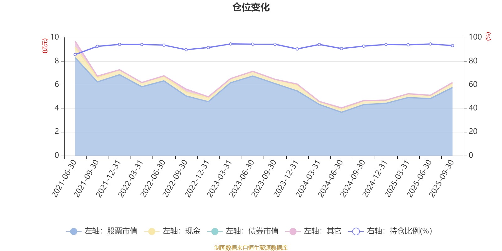 据定期报告数据统计,近三年平均股票仓位为93.29%,同类平均为86.77%。2023年一季度末基金达到94.66%的最高仓位,2021年上半年末最低,为85.72%。