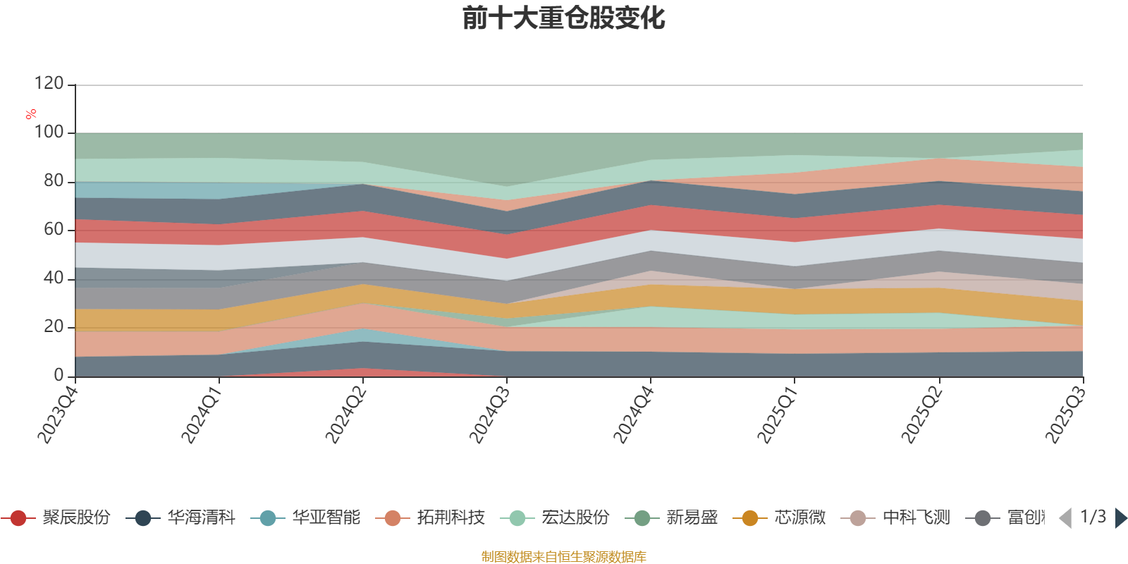 该基金持股集中度较高,且持股标的较为稳定,近2年前十大重仓股集中度长期超过60%。截至2025年三季度末,基金十大重仓股分别是拓荆科技、华海清科、芯源微、北方华创、正帆科技、江丰电子、中微公司、富创精密、新莱应材、中科飞测。