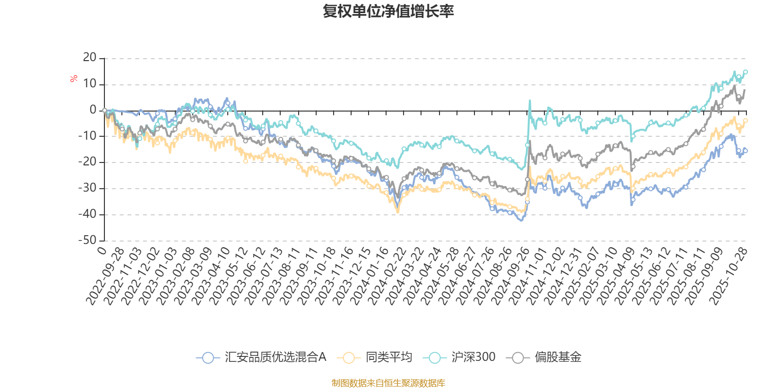 截至10月28日,汇安品质优选混合A近三个月复权单位净值增长率为12.28%,位于同类可比基金353/621;近半年复权单位净值增长率为22.70%,位于同类可比基金418/619;近一年复权单位净值增长率为16.60%,位于同类可比基金456/611;近三年复权单位净值增长率为-13.76%,位于同类可比基金486/518。