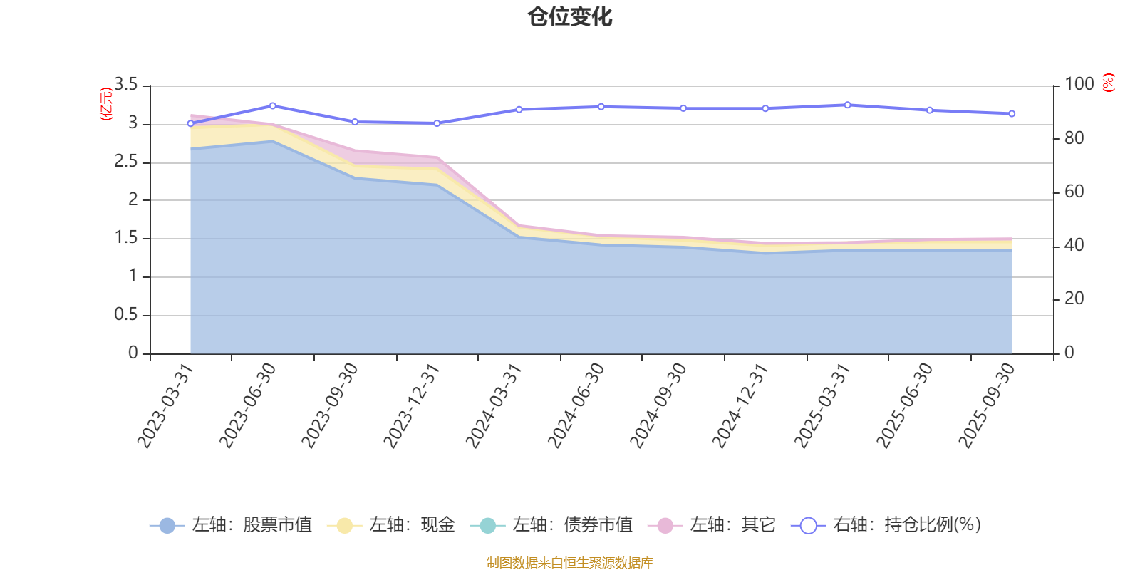 据定期报告数据统计,成立以来平均股票仓位为89.99%,同类平均为85.66%。2025年一季度末基金达到92.77%的最高仓位,2023年一季度末最低,为85.86%。