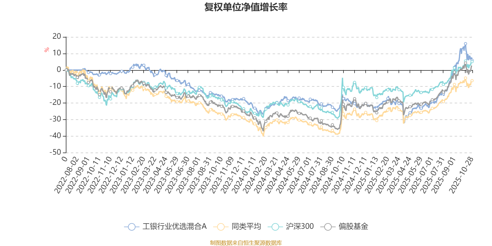 截至10月28日,工银行业优选混合A近三个月复权单位净值增长率为23.27%,位于同类可比基金138/689;近半年复权单位净值增长率为42.73%,位于同类可比基金127/688;近一年复权单位净值增长率为30.26%,位于同类可比基金259/653;近三年复权单位净值增长率为8.76%,位于同类可比基金218/364。