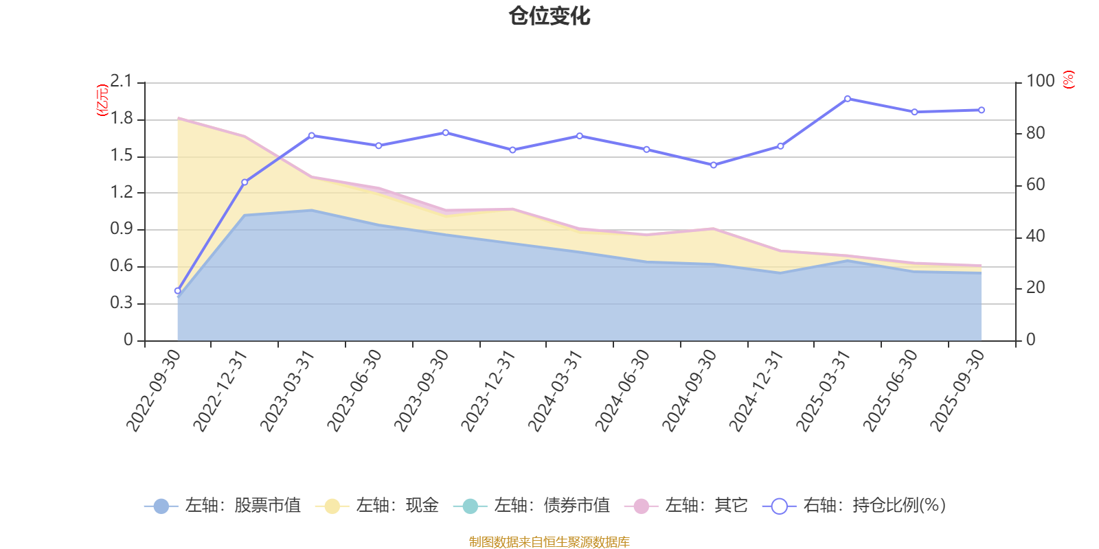据定期报告数据统计,近三年平均股票仓位为78.23%,同类平均为83.73%。2025年一季度末基金达到93.67%的最高仓位,2022年三季度末最低,为19.34%。