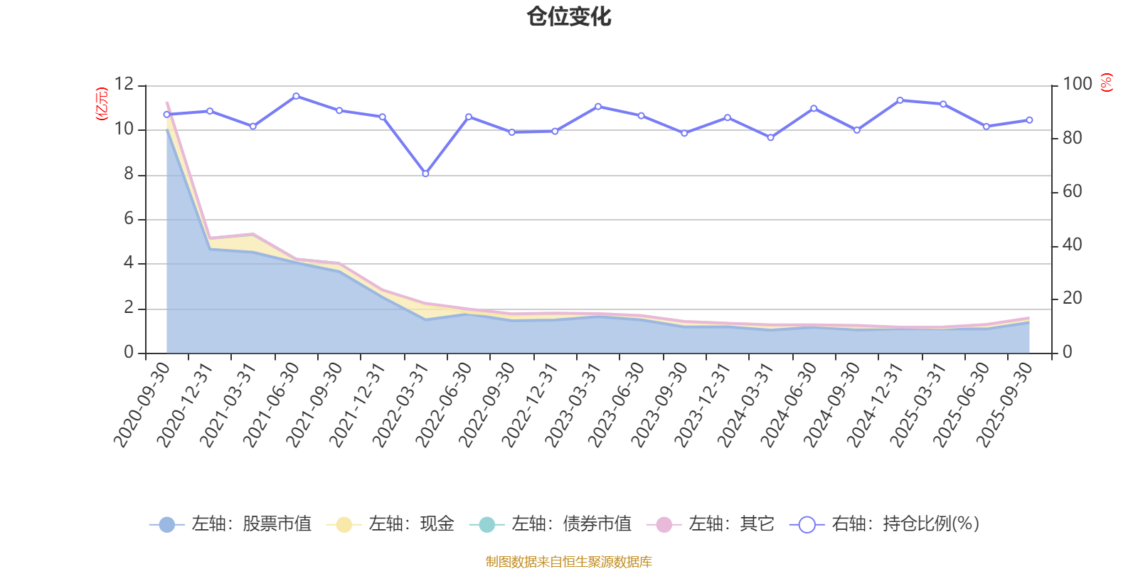 据定期报告数据统计,近三年平均股票仓位为87.34%,同类平均为86.77%。2021年上半年末基金达到96%的最高仓位,2022年一季度末最低,为67.04%。