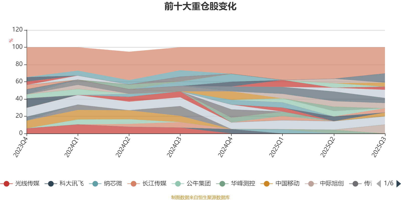 该基金持股集中度较高,近2年前十大重仓股集中度长期超过60%。截至2025年三季度末,基金十大重仓股分别是新易盛、中际旭创、腾讯控股、源杰科技、恺英网络、小米集团-W、芒果超媒、工业富联、杰普特、中芯国际。