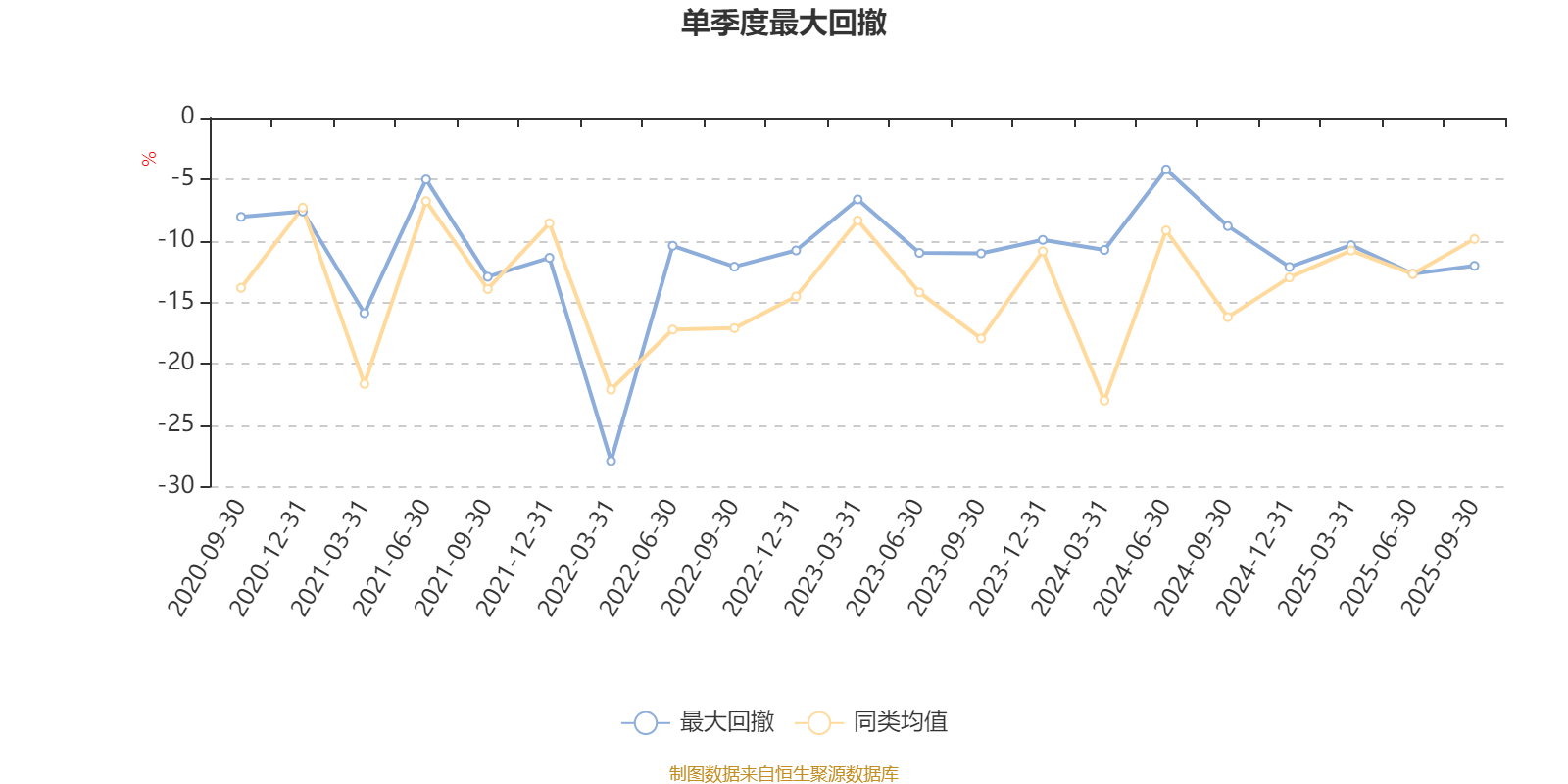 截至10月28日,基金近三年最大回撤为29.36%,同类可比基金排名6/159。单季度最大回撤出现在2022年一季度,为27.92%。