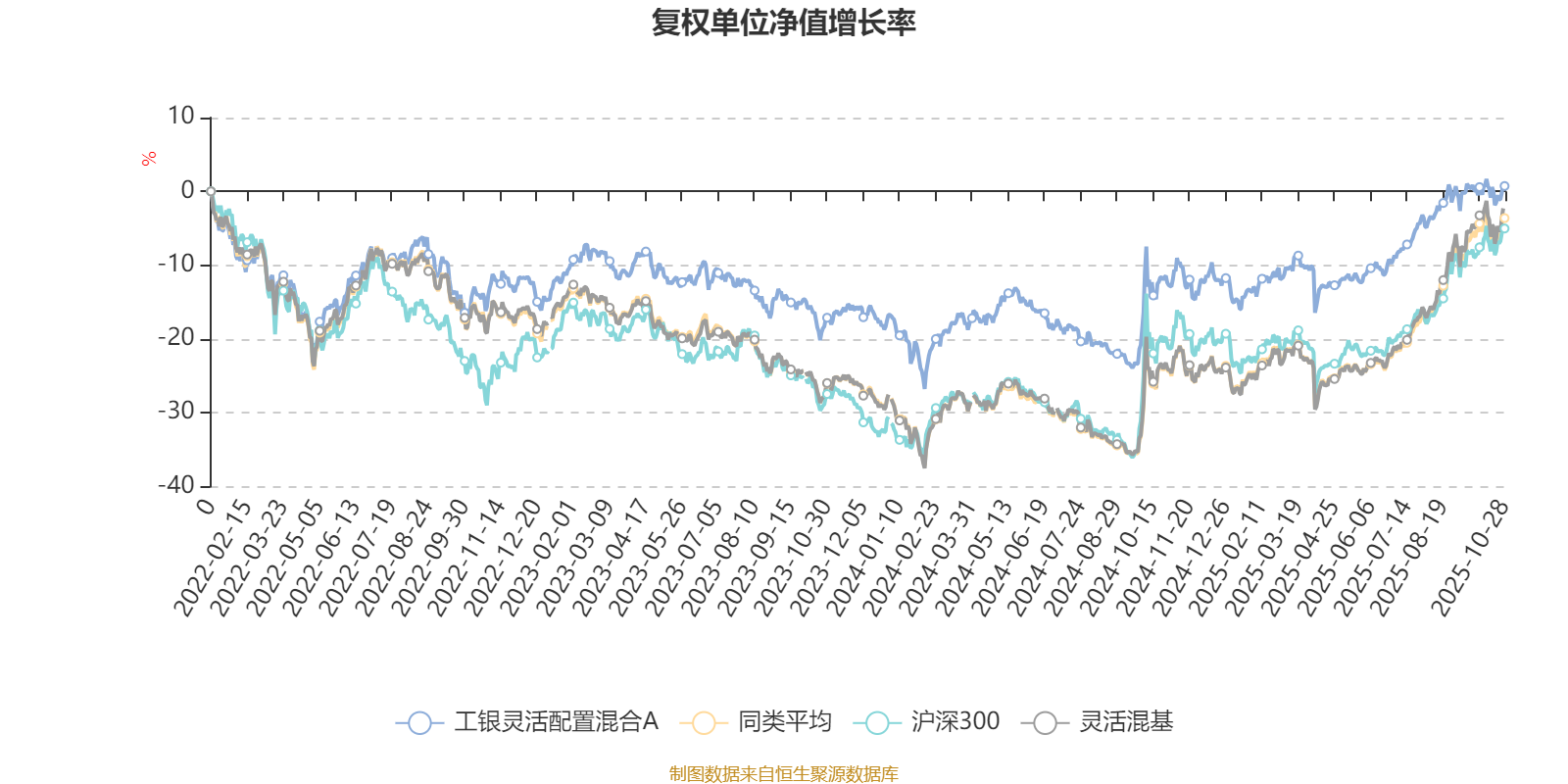 截至10月28日,工银灵活配置混合A近三个月复权单位净值增长率为4.65%,位于同类可比基金942/1287;近半年复权单位净值增长率为15.93%,位于同类可比基金874/1287;近一年复权单位净值增长率为13.76%,位于同类可比基金821/1287;近三年复权单位净值增长率为20.19%,位于同类可比基金552/1286。