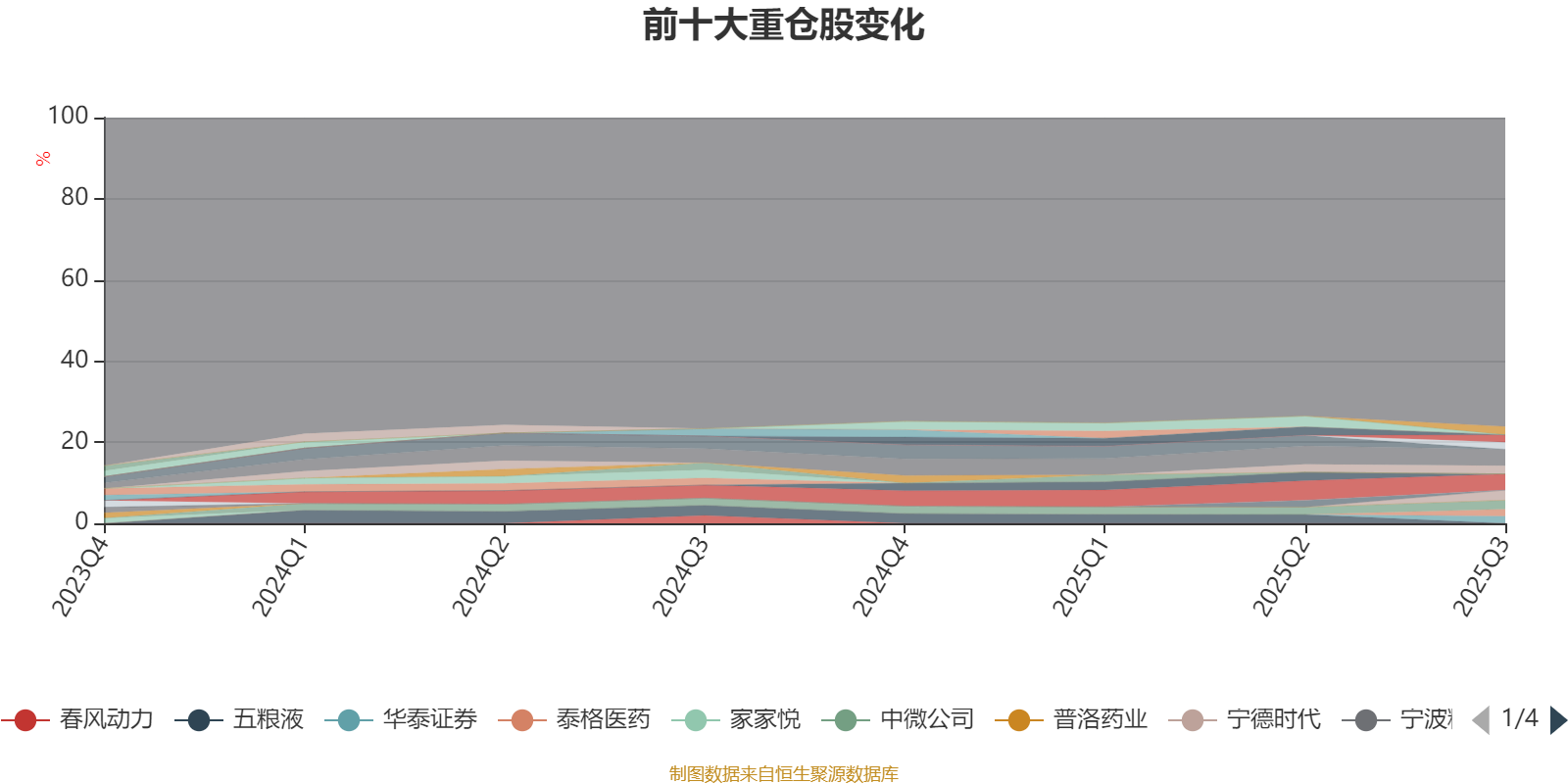 截至2025年三季度末,基金十大重仓股分别是杭州银行、招商银行、宁德时代、中微公司、三环集团、中国平安、嘉澳环保、华泰证券、泰格医药、天孚通信。