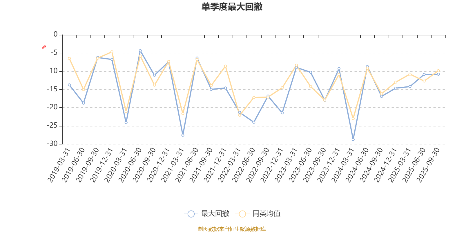 截至10月28日,基金近三年最大回撤为48.22%,同类可比基金排名119/159。单季度最大回撤出现在2024年一季度,为28.76%。