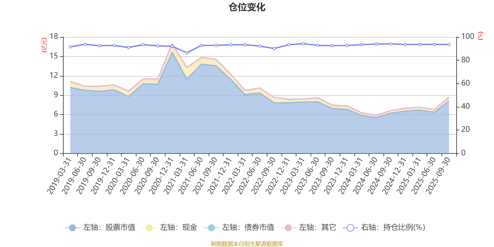 据定期报告数据统计,近三年平均股票仓位为93.5%,同类平均为86.77%。2023年一季度末基金达到94.31%的最高仓位,2021年一季度末最低,为86.45%。