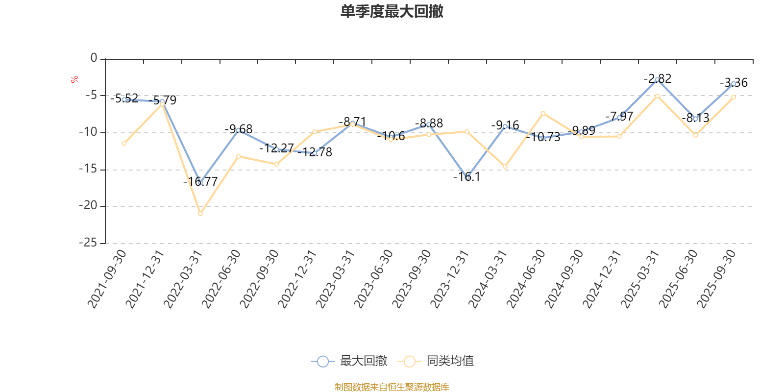截至10月28日,基金近三年最大回撤为34.58%,同类可比基金排名62/124。单季度最大回撤出现在2022年一季度,为16.77%。