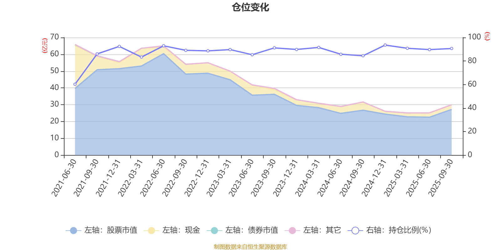 据定期报告数据统计,近三年平均股票仓位为89.28%,同类平均为86.15%。2024年末基金达到93.58%的最高仓位,2021年上半年末最低,为60.27%。