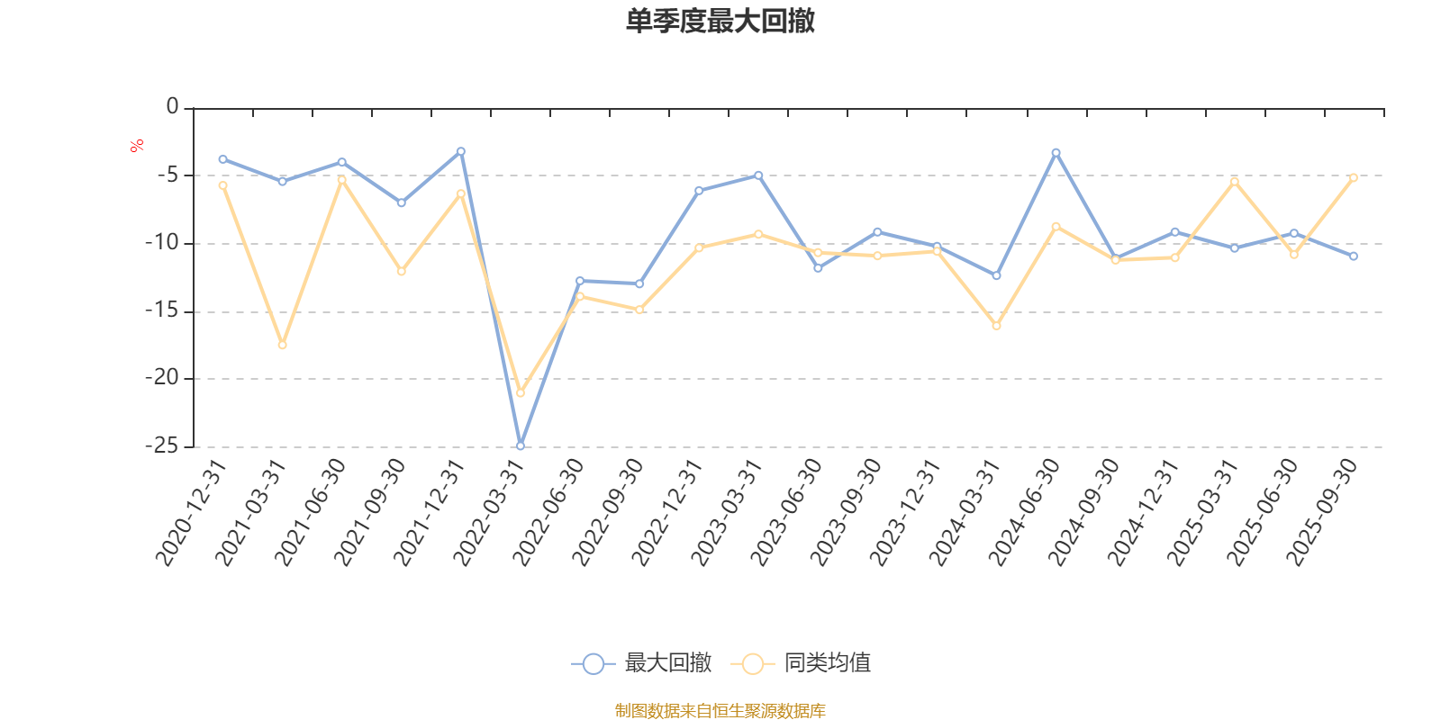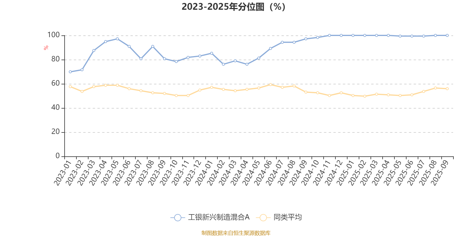 通过所选区间该基金净值增长率分位图,可以观察该基金与同类基金业绩比较情况。图为坐标原点到区间内某时点的净值增长率在同类基金中的分位数。