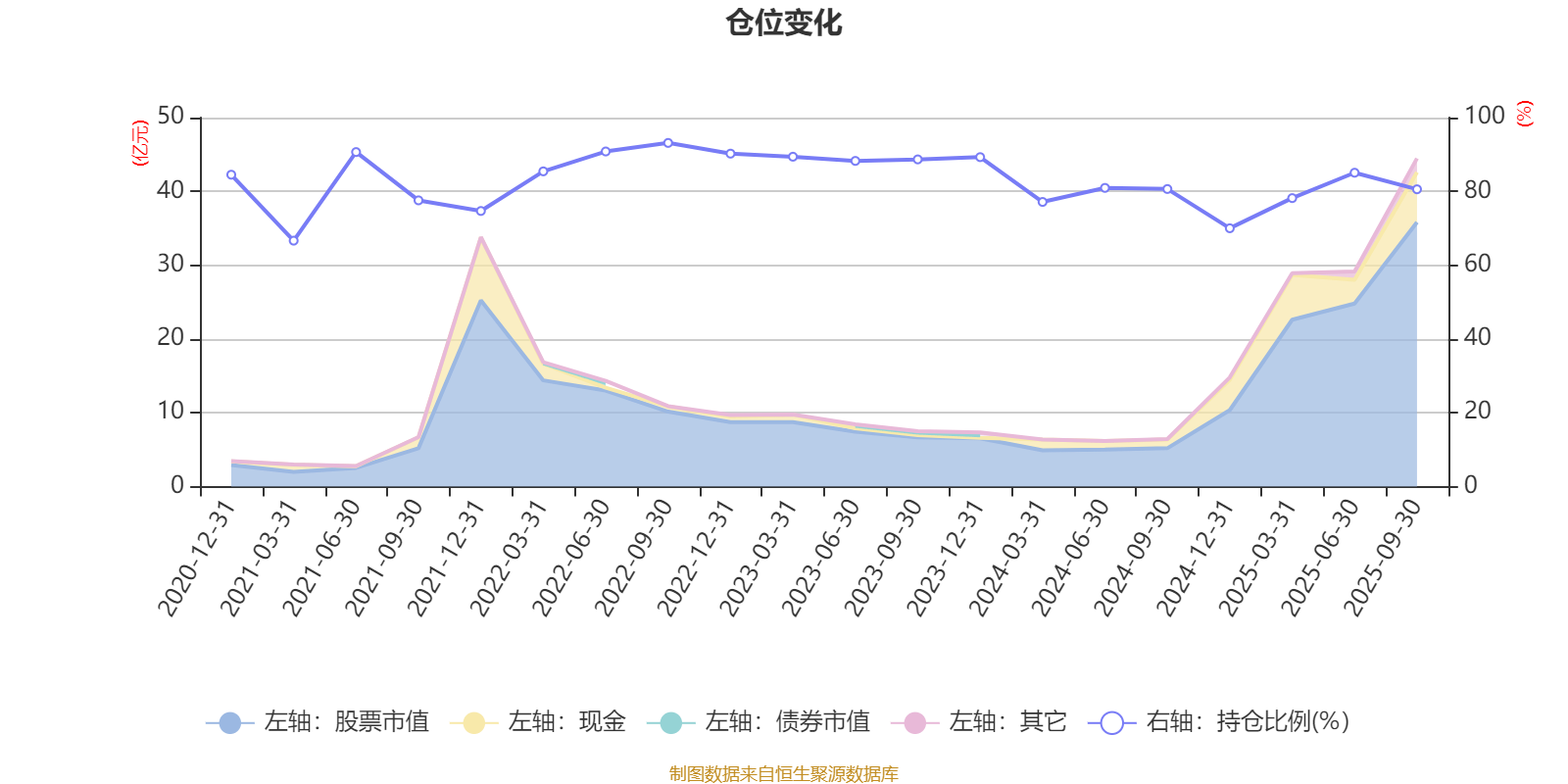 据定期报告数据统计,近三年平均股票仓位为83.2%,同类平均为87.62%。2022年三季度末基金达到93.14%的最高仓位,2021年一季度末最低,为66.65%。