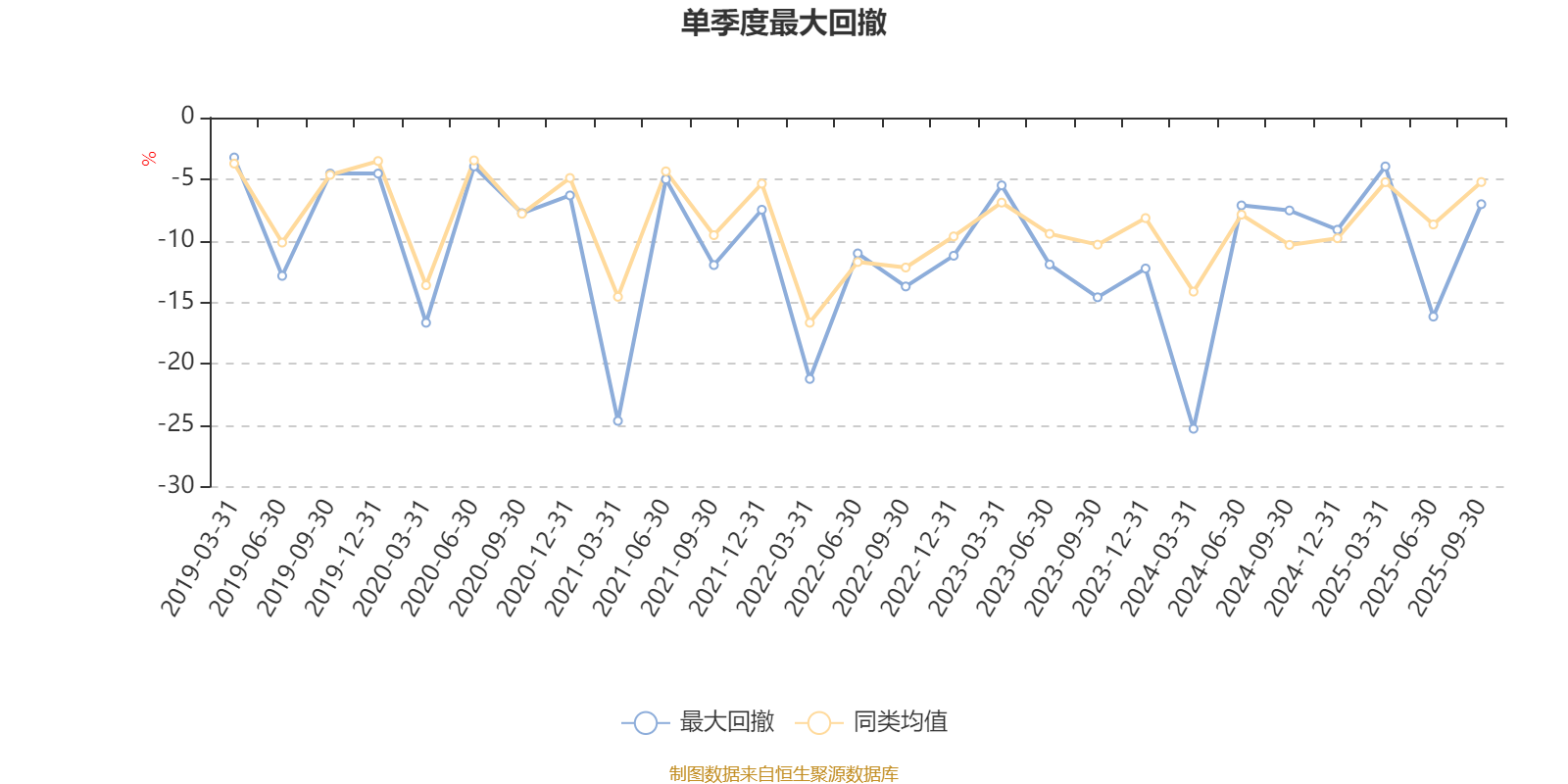 截至10月28日,基金近三年最大回撤为47.75%,同类可比基金排名1137/1274。单季度最大回撤出现在2024年一季度,为25.3%。
