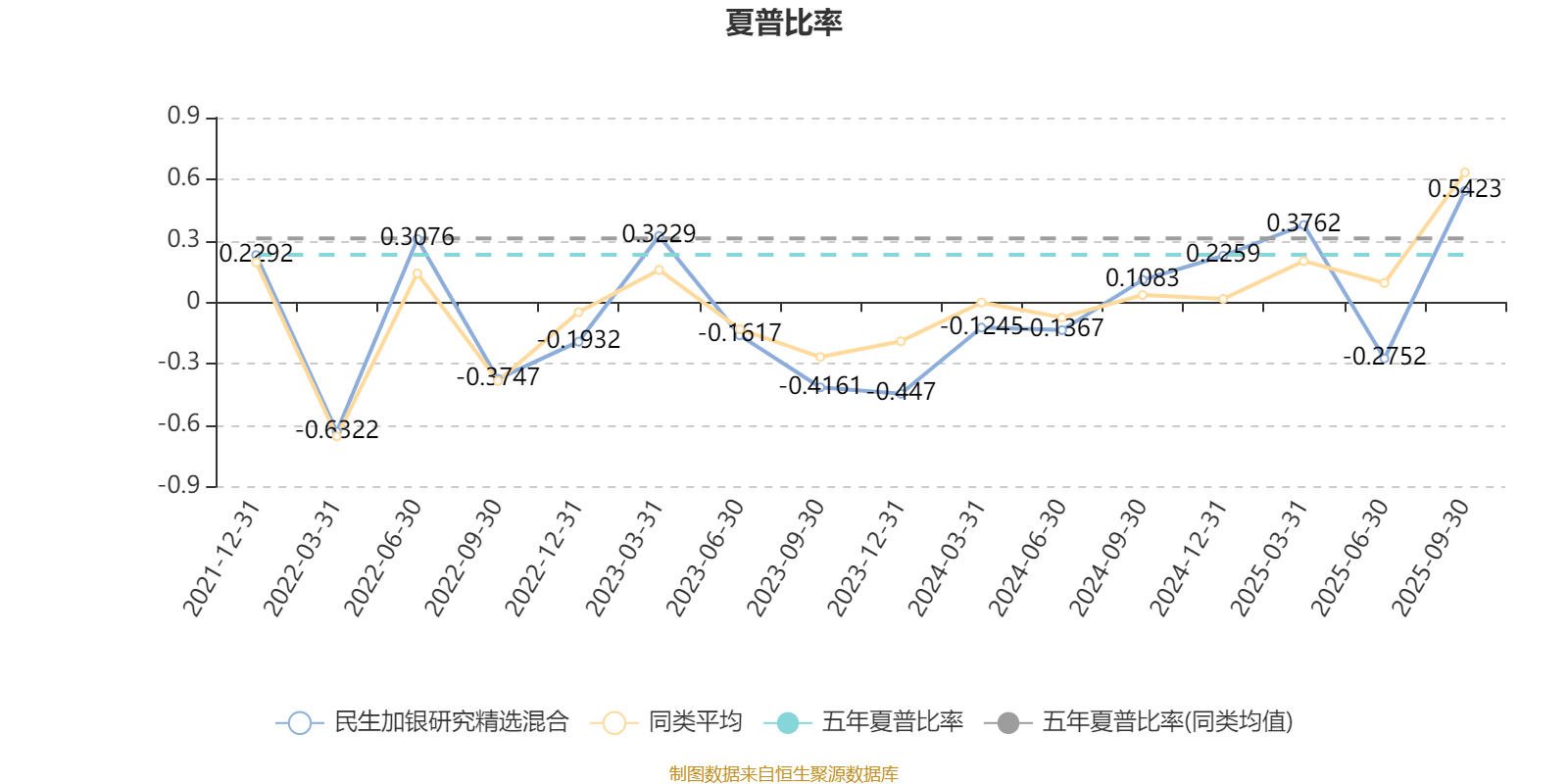 截至9月30日,基金近三年夏普比率为0.0854,位于同类可比基金1125/1285。
