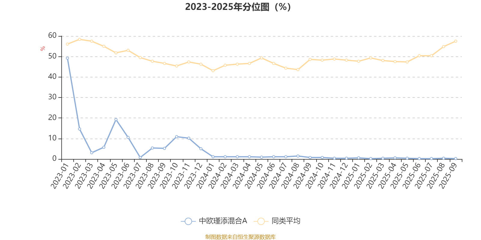 通过所选区间该基金净值增长率分位图,可以观察该基金与同类基金业绩比较情况。图为坐标原点到区间内某时点的净值增长率在同类基金中的分位数。