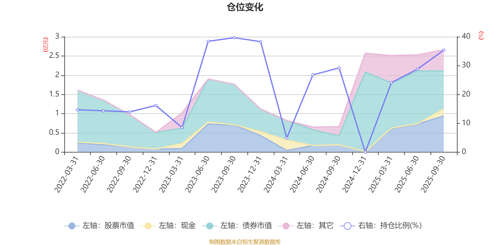 据定期报告数据统计,近三年平均股票仓位为24.18%,同类平均为19.14%。2023年三季度末基金达到39.67%的最高仓位,2024年一季度末最低,为4.88%。