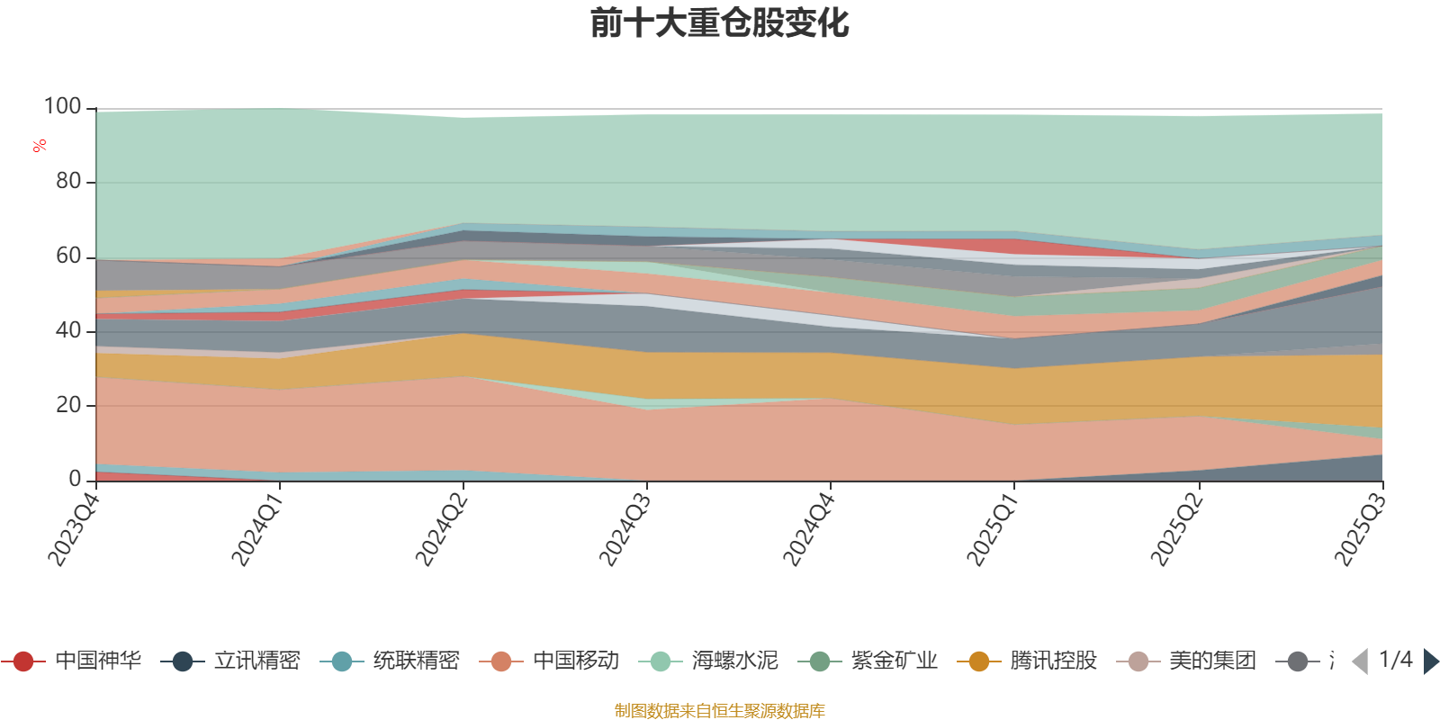 该基金持股集中度较高。截至2025年三季度末,基金十大重仓股分别是腾讯控股、宁德时代、立讯精密、中国移动、伟明环保、小米集团-W、神马电力、紫金矿业、海大集团、中国太保。