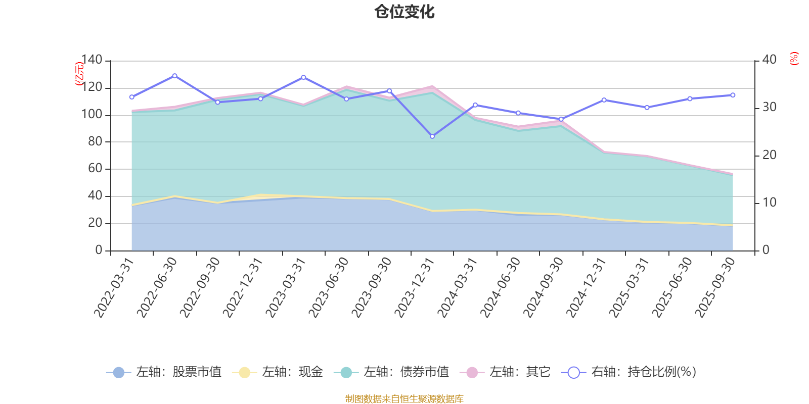 据定期报告数据统计,近三年平均股票仓位为31%,同类平均为19.14%。2022年上半年末基金达到36.8%的最高仓位,2023年末最低,为24.07%。