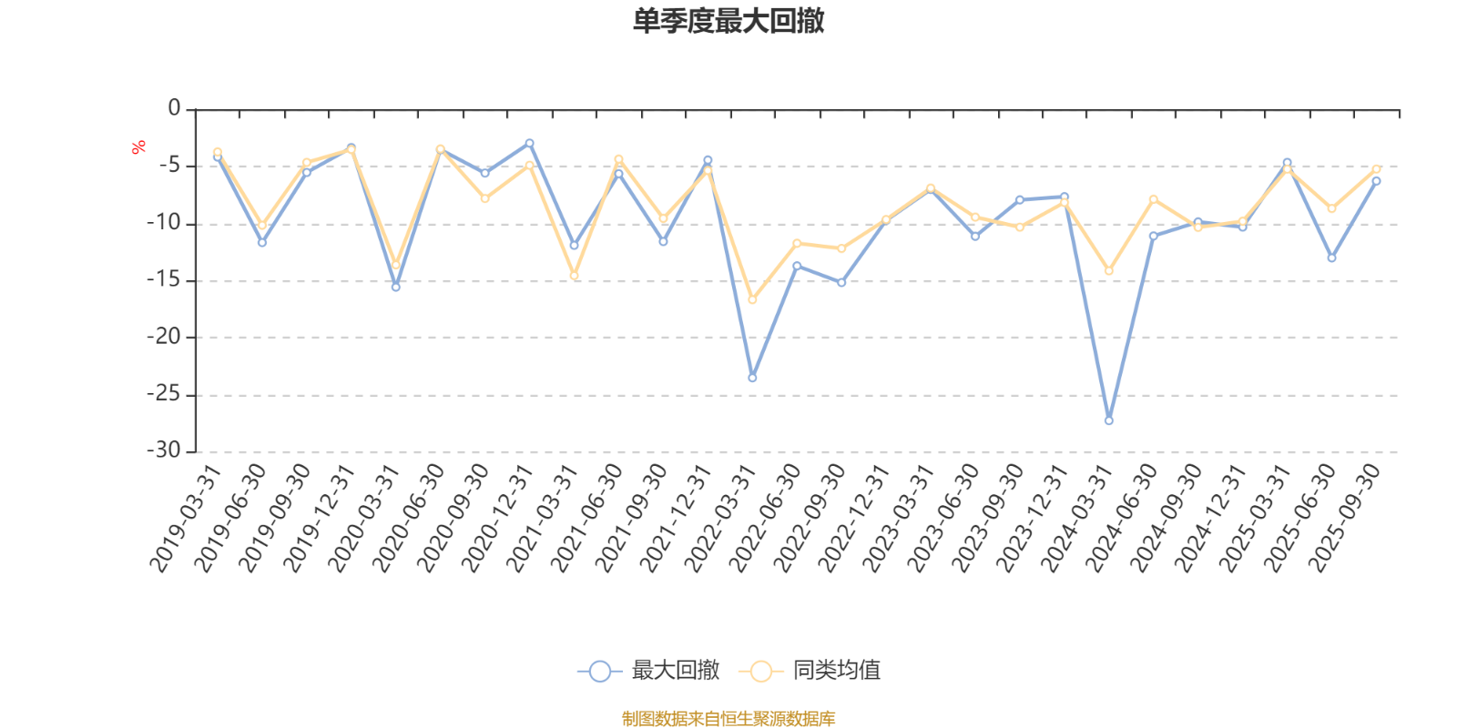 截至10月28日,基金近三年最大回撤为34.15%,同类可比基金排名680/1274。单季度最大回撤出现在2024年一季度,为27.27%。