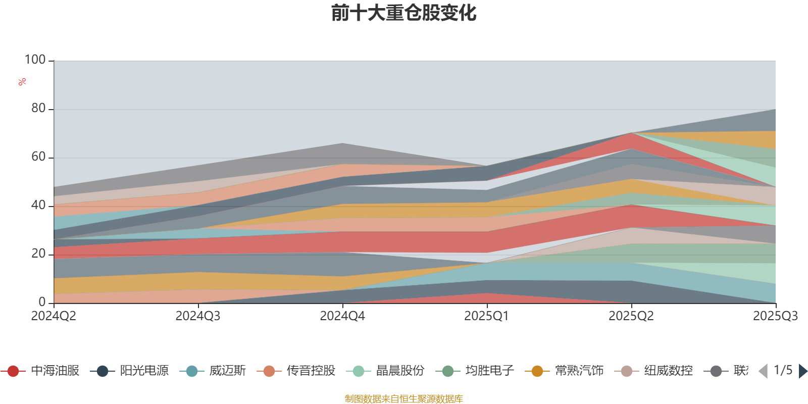 截至2025年三季度末,基金十大重仓股分别是小鹏汽车-W、晶晨股份、特变电工、均胜电子、时代电气、威迈斯、比亚迪电子、紫光股份、奥海科技、联想集团。