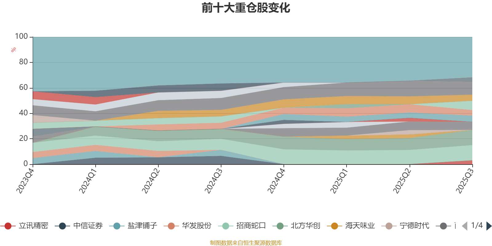 该基金持股集中度较高。截至2025年三季度末,基金十大重仓股分别是招商蛇口、北方华创、中国平安、保利发展、百润股份、欧派家居、沪农商行、比亚迪、拓普集团、立讯精密。