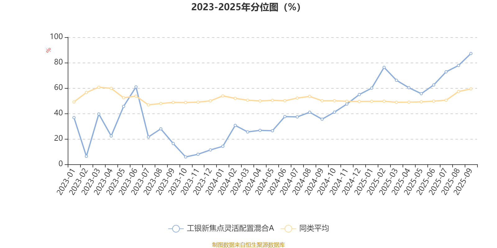 截至10月29日,工银新焦点灵活配置混合A近三个月复权单位净值增长率为31.84%,位于同类可比基金160/1287;近半年复权单位净值增长率为54.41%,位于同类可比基金147/1287;近一年复权单位净值增长率为64.25%,位于同类可比基金89/1287;近三年复权单位净值增长率为73.56%,位于同类可比基金68/1286。