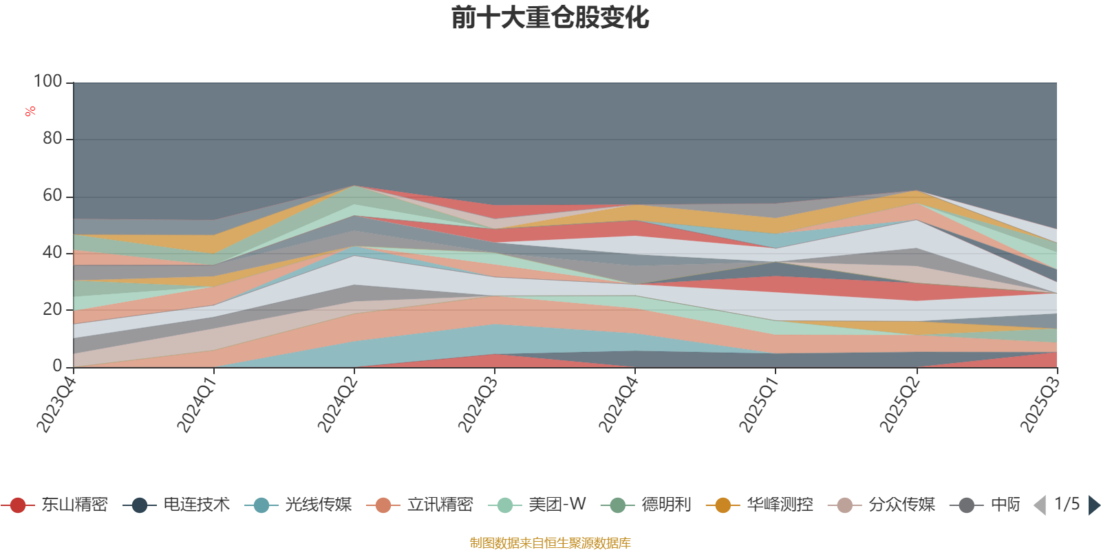截至2025年三季度末,基金十大重仓股分别是腾讯控股、快手-W、晶晨股份、东山精密、德明利、兆易创新、阿里巴巴-W、中芯国际、立讯精密、新易盛。