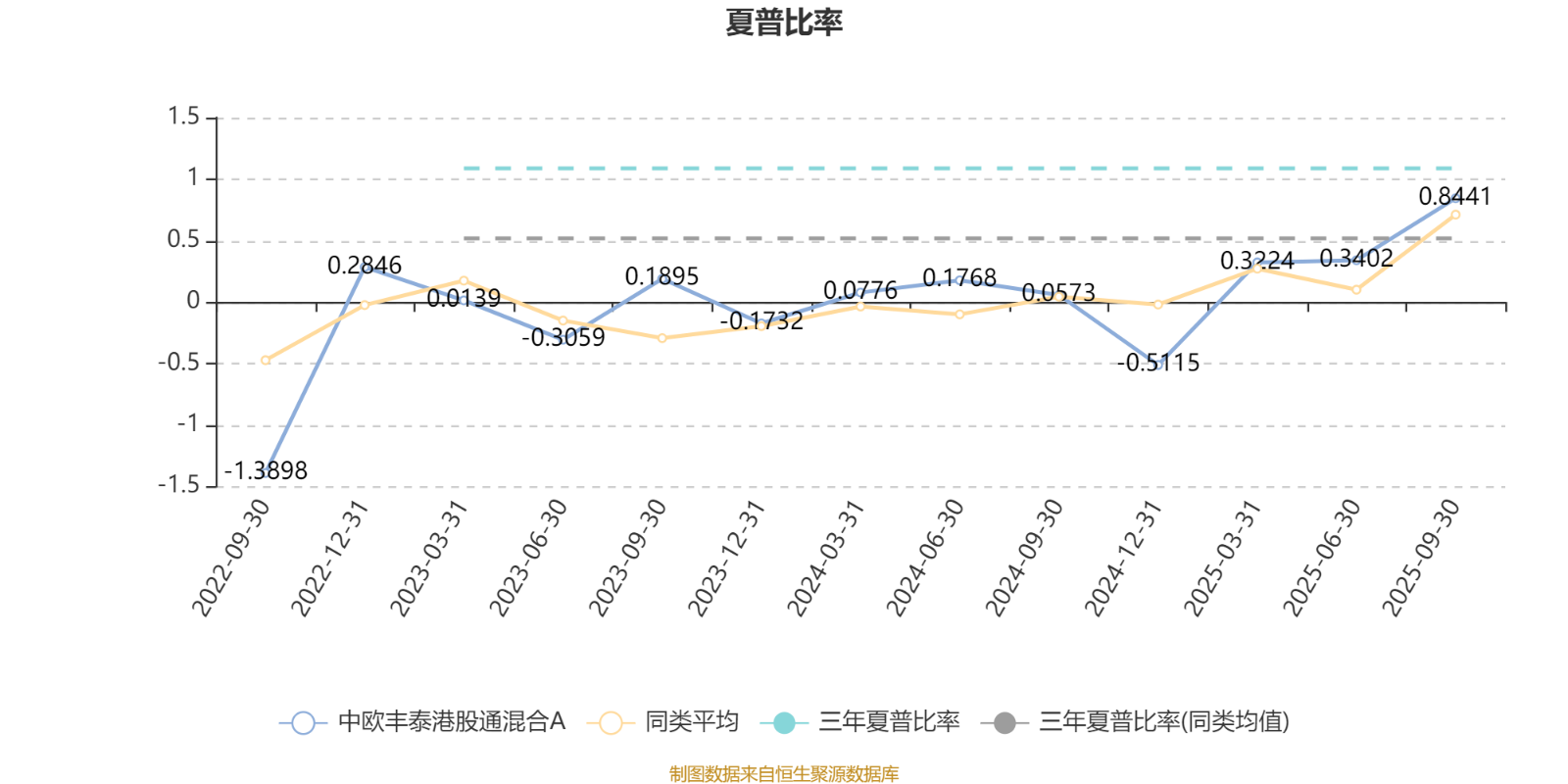 截至9月30日,基金近三年夏普比率为1.0874,位于同类可比基金15/518。