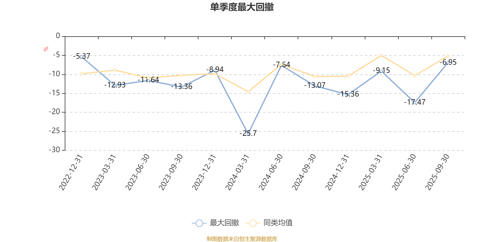 截至10月28日,基金近三年最大回撤为41.57%,同类可比基金排名101/124。单季度最大回撤出现在2024年一季度,为25.7%。