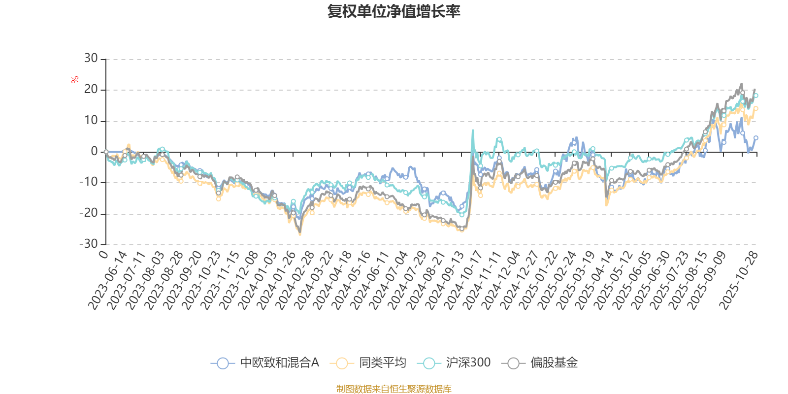 截至10月28日,中欧致和混合A近三个月复权单位净值增长率为5.51%,位于同类可比基金549/689;近半年复权单位净值增长率为18.26%,位于同类可比基金514/688;近一年复权单位净值增长率为10.71%,位于同类可比基金555/653。