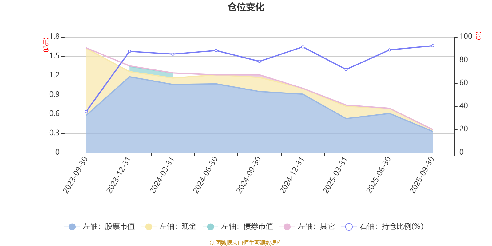 据定期报告数据统计,成立以来平均股票仓位为79.96%,同类平均为83.73%。2025年三季度末基金达到92.37%的最高仓位,2023年三季度末最低,为35.52%。